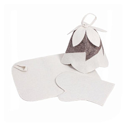 Набор 3-х предметный С легким паром белый-шапка, коврик, рукавица
