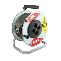 Удлинитель силовой на металлической катушке LUX К4-Е-30 четырехместный с крышками ПВС 3x1.5 16А 30м с заземлением