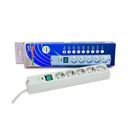 Удлинитель сетевой LUX У3-ЕВК-05 с выключателем трехместный 250В 16А 5м c заземлением белый