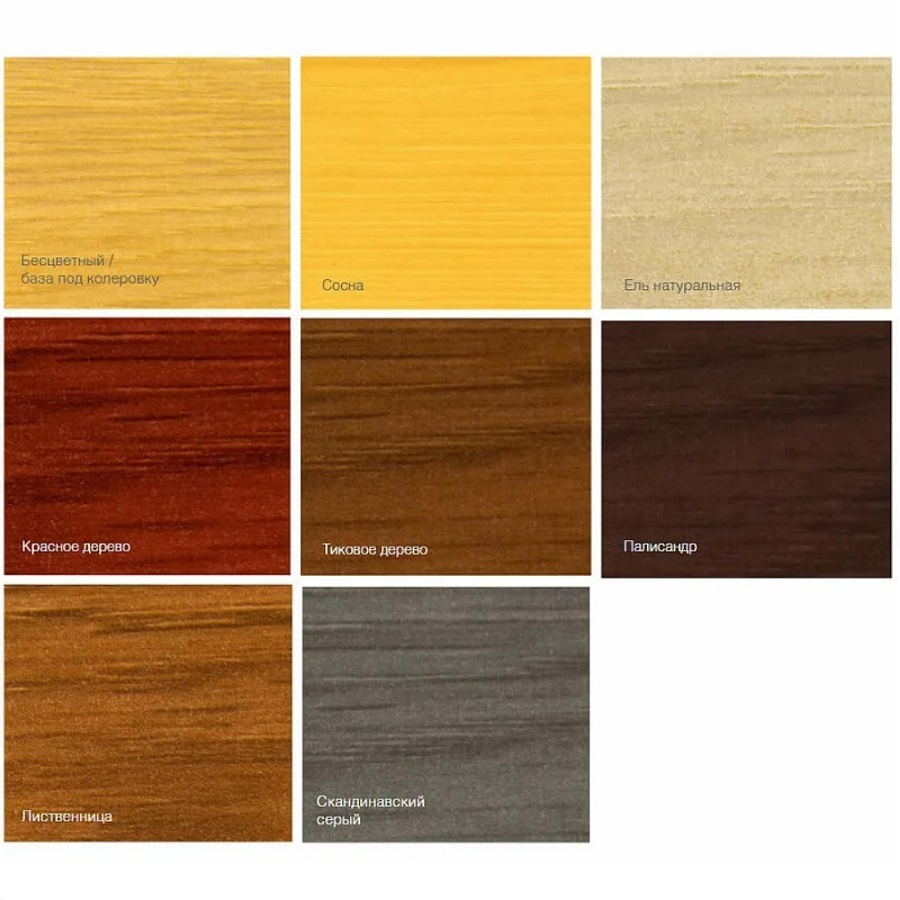 Сохраняет видимой текстуру древесины, полуматовая.