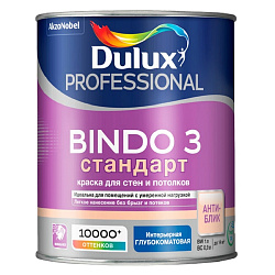 Краска водно-дисперсионная DULUX BINDO 3 СТАНДАРТ для стен и потолков BW