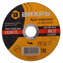 Круг отрезной по металлу 125х1.0х22 мм ВИХРЬ