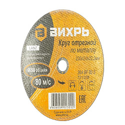 Круг отрезной по металлу 230х2,0х22 мм ВИХРЬ