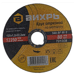 Круг отрезной по металлу 125х1.2х22 мм ВИХРЬ