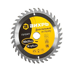 Диск пильный Вихрь по дереву 160х20 мм 36 зубьев+кольцо 16/20