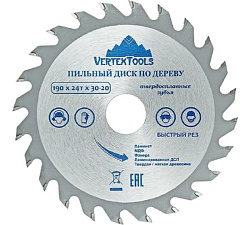Диск пильный Вихрь по дереву 190х30 мм 24 зуба