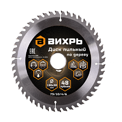 Диск пильный Вихрь по дереву 190х30 мм 48 зубьев