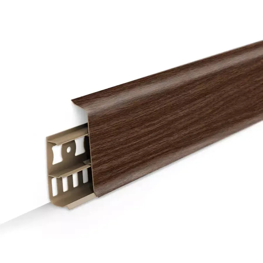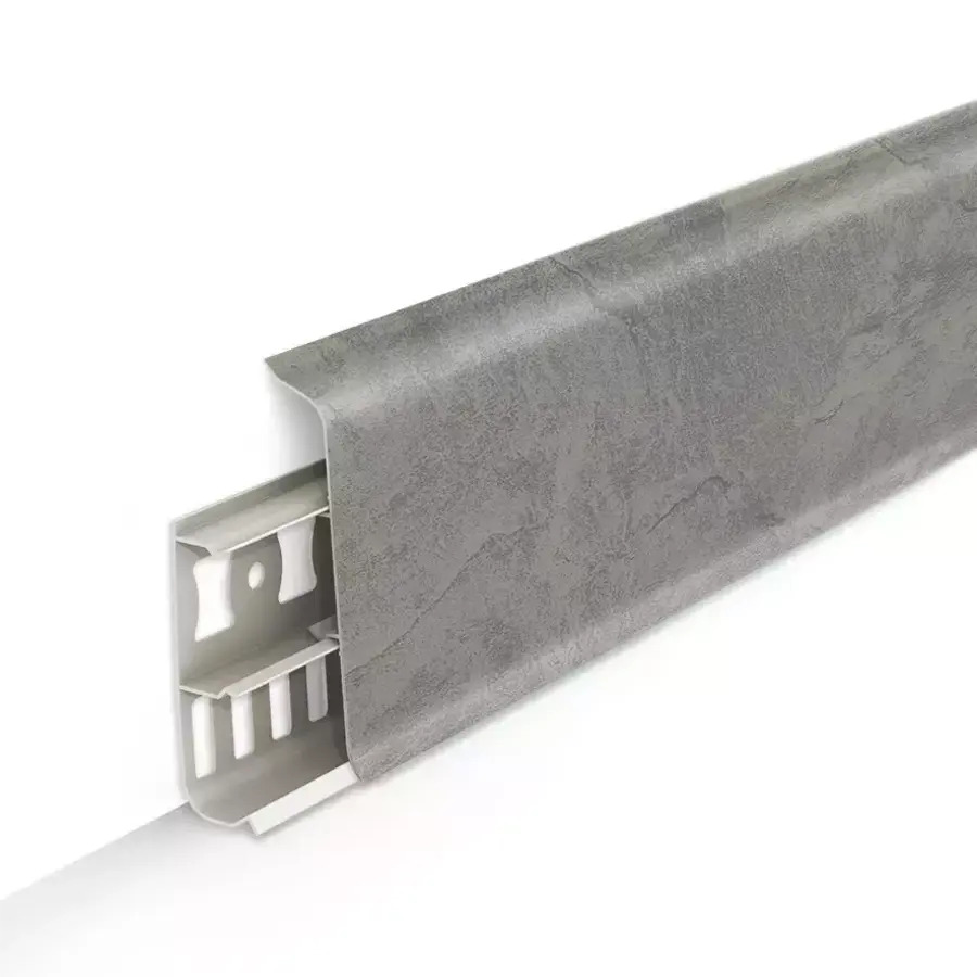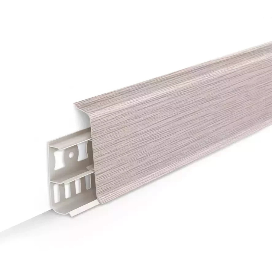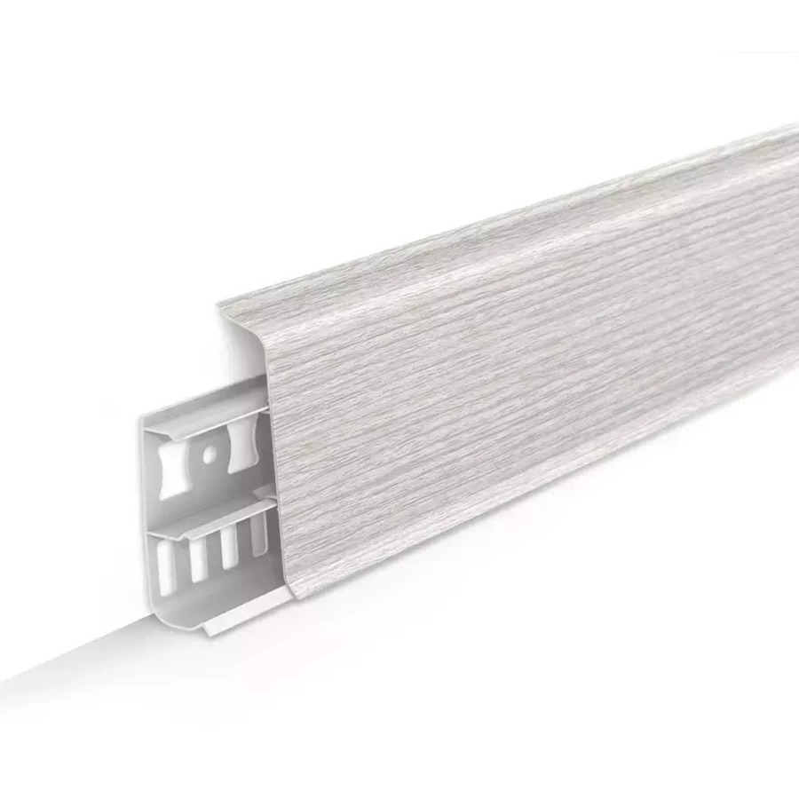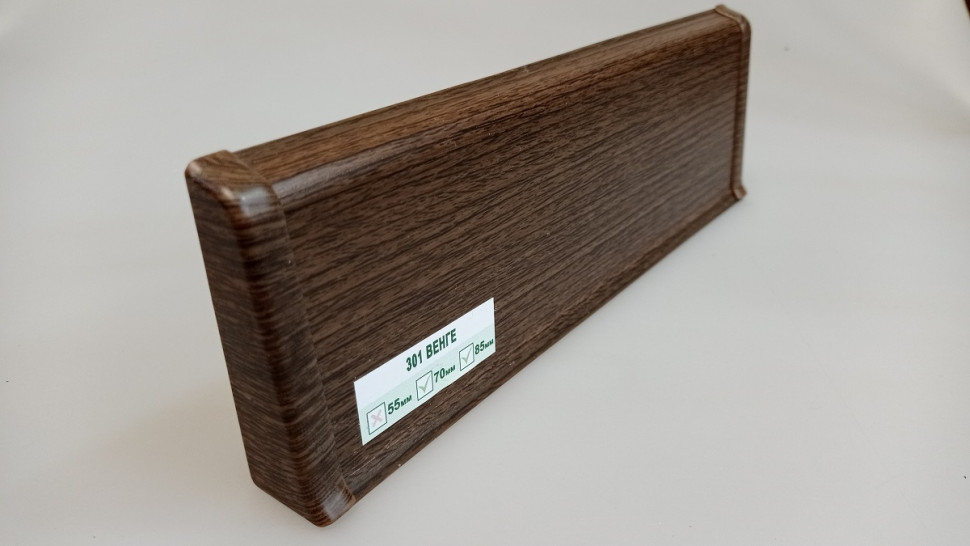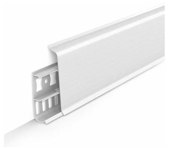 Мягкий край лицевой части делает возможным использование плинтуса на неровных стенах. Изготовлен из прочного, влагостойкого пластика, с возможным незначительным различием в оттенках между плинтусом и фурнитурой, что является редким явлением.