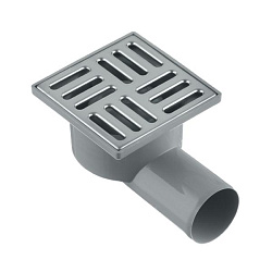 Трап с нержавеющей решеткой 100х100 мм горизонтальный выпуск d50 мм