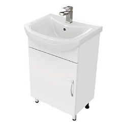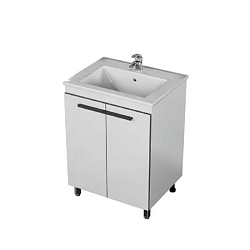 Тумба Акванет Алвита new 60 напольная 1 ящ., 2 дв., цв.белый матовый с раковиной-столешницей Flat 60