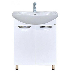 Тумба Акванет Вега 60 напольная 2 ящ. цв. белый глянец с раковиной керамич Ирис 60