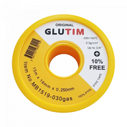 Фум лента GLUTIM 15м х 19мм х 0,25мм желтая БОЛЬШАЯ