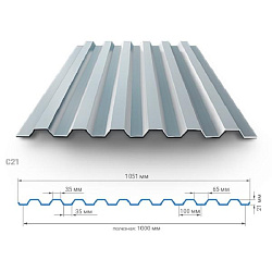 Профнастил С21-1000/1051 0,50мм оцинкованный 3,5м