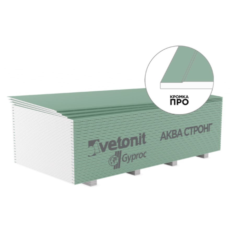 Vetonit (Gyproc) Аква Стронг влагостойкий (ГСП-RH3) гипсовая плита толщиной 15мм обладает высокой плотностью. Это обеспечивает жесткость конструкции, сопоставимую с двумя стандартными плитами толщиной 12мм