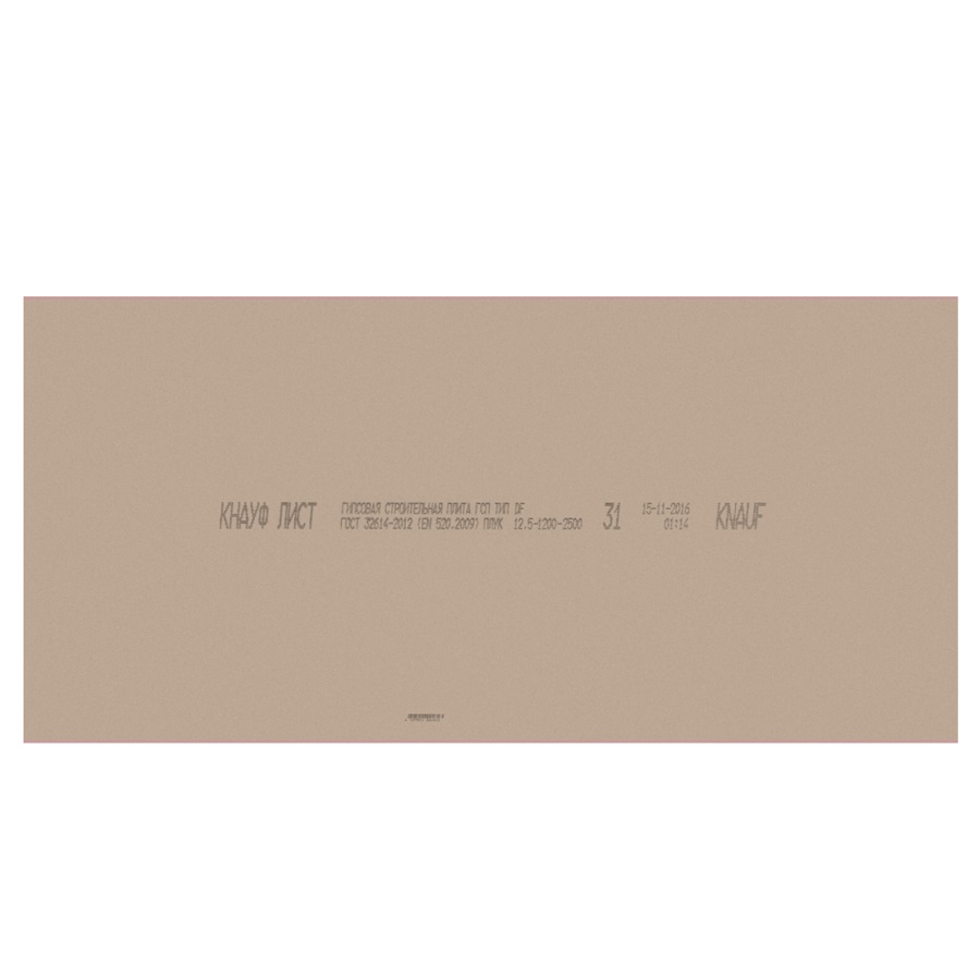масса КНАУФ-листа огнестойкого (ГСП-DF) размером 2500х1200х12,5 мм (3 кв.м): 30,6 кг;