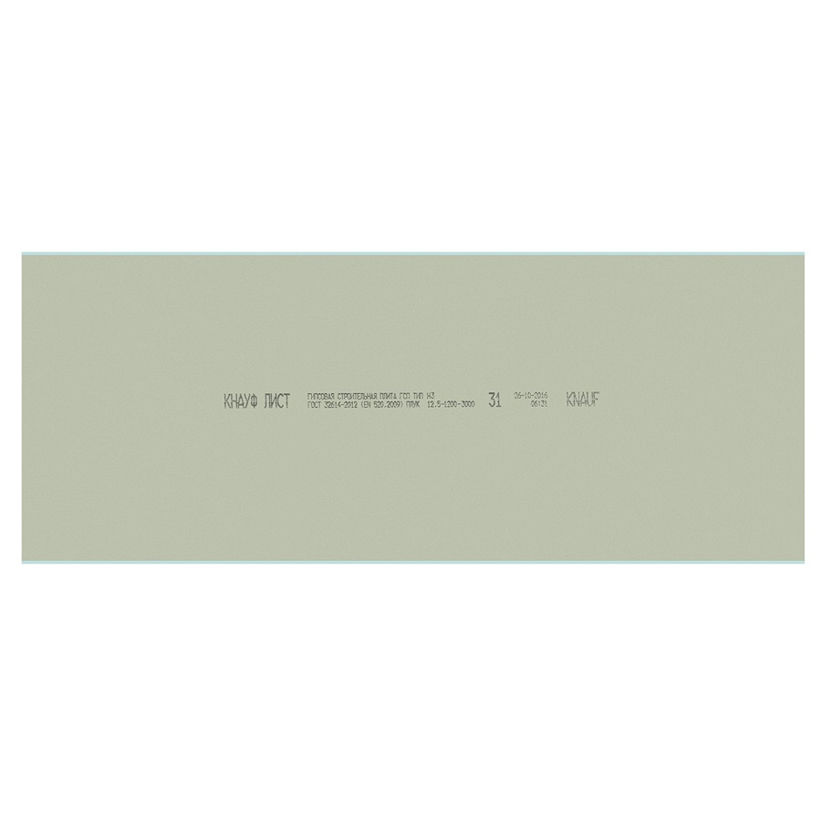 масса КНАУФ-листа влагостойкого (ГСП-Н3) размером 2500×1200×12,5 мм (3 кв.м): 25 кг;