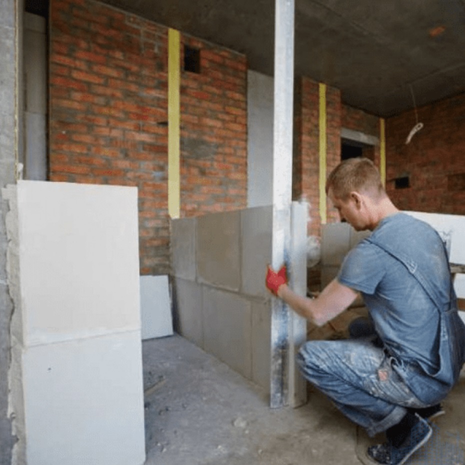 Применяется для устройства перегородок, ненесущих стен и облицовок в зданиях с сухим и нормальным влажностным режимом (до 60%)