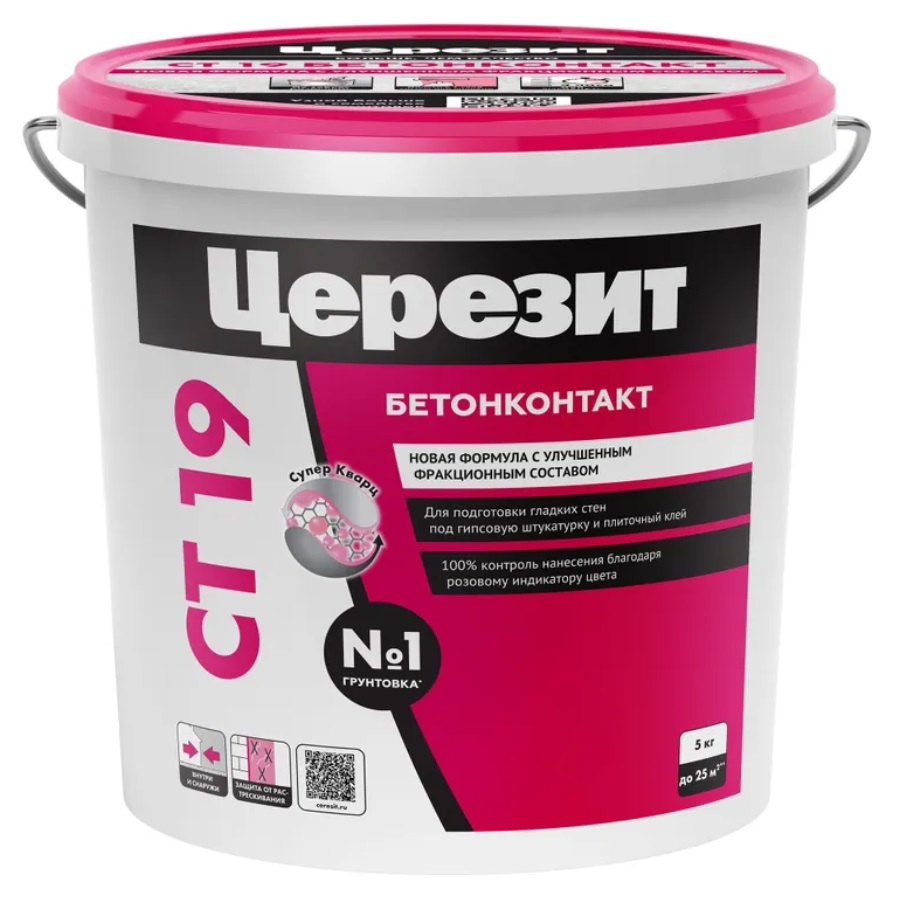 Грунтовка CT 19 Бетонконтакт предназначена для обработки гладких слабо впитывающих оснований стен из монолитного или сборного железобетона перед нанесением цементных и гипсовых штукатурок.