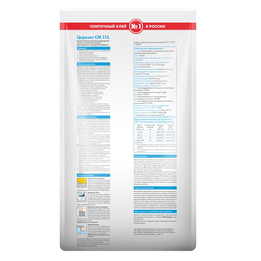 Упаковка: Сухая смесь CM 115 поставляется в многослойных бумажных мешках по 25 кг, а также в фольгированных мешках по 5 кг.