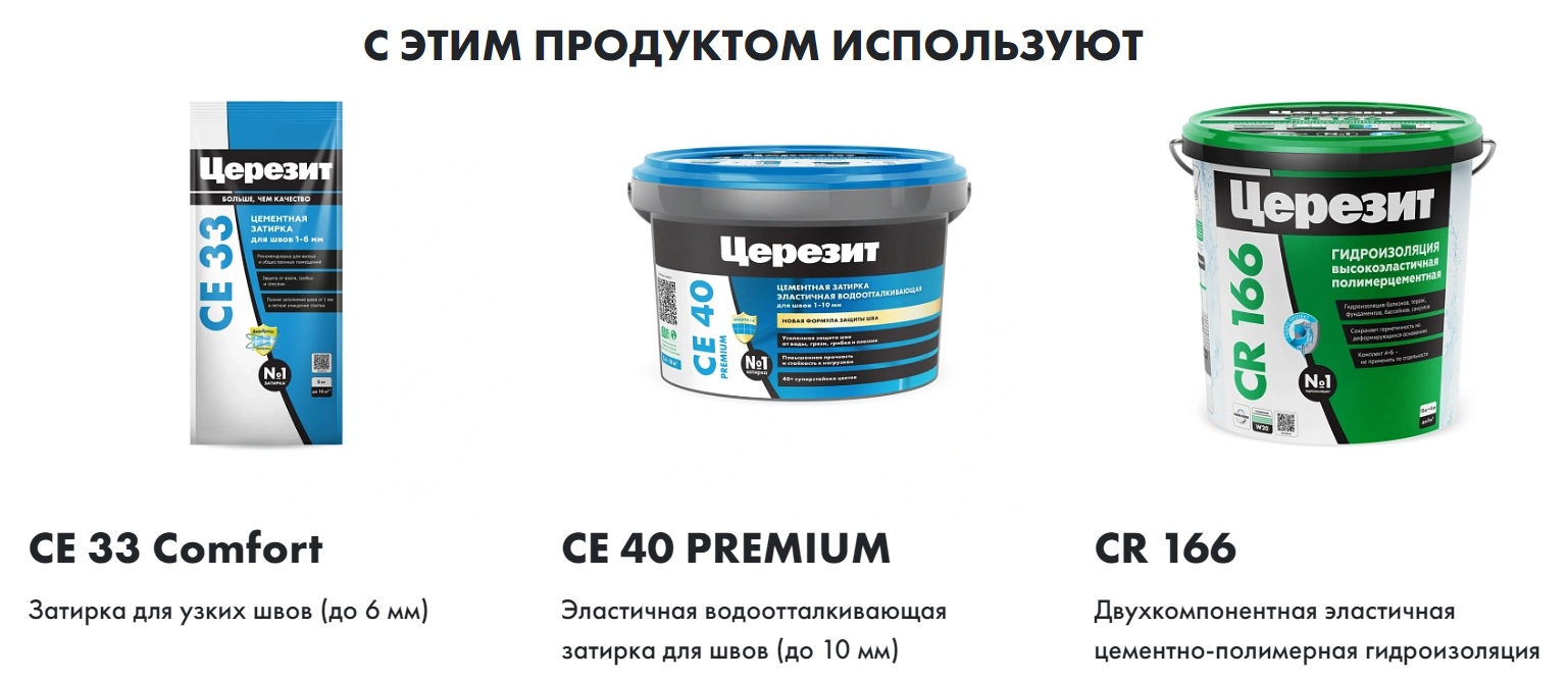 - совместим с гидроизоляционными материалами Церезит CR 65, CR 166 и CL 51;