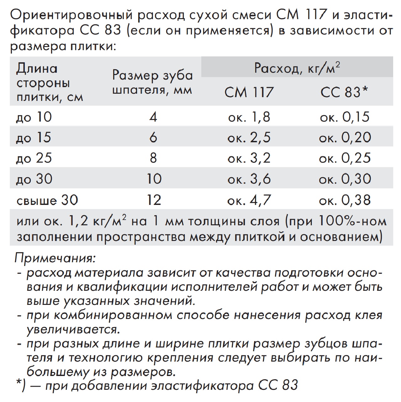 - устойчив к сползанию плитки;