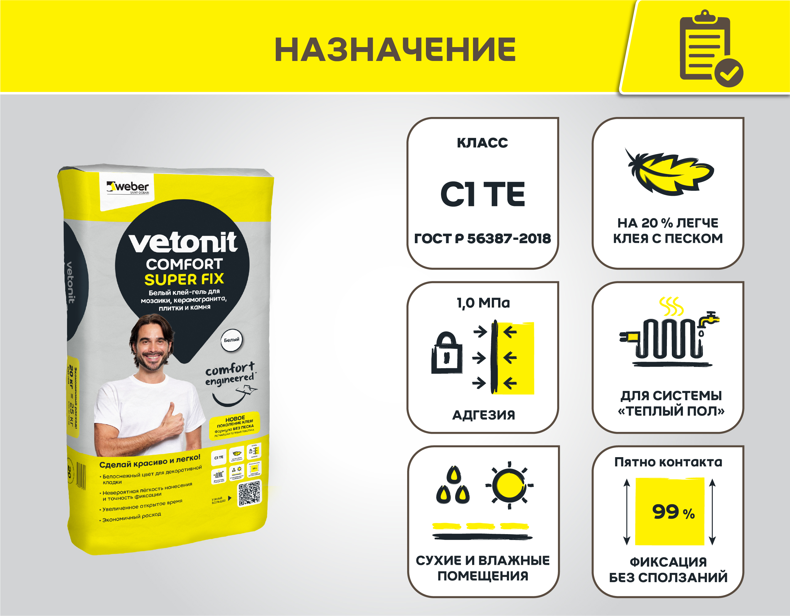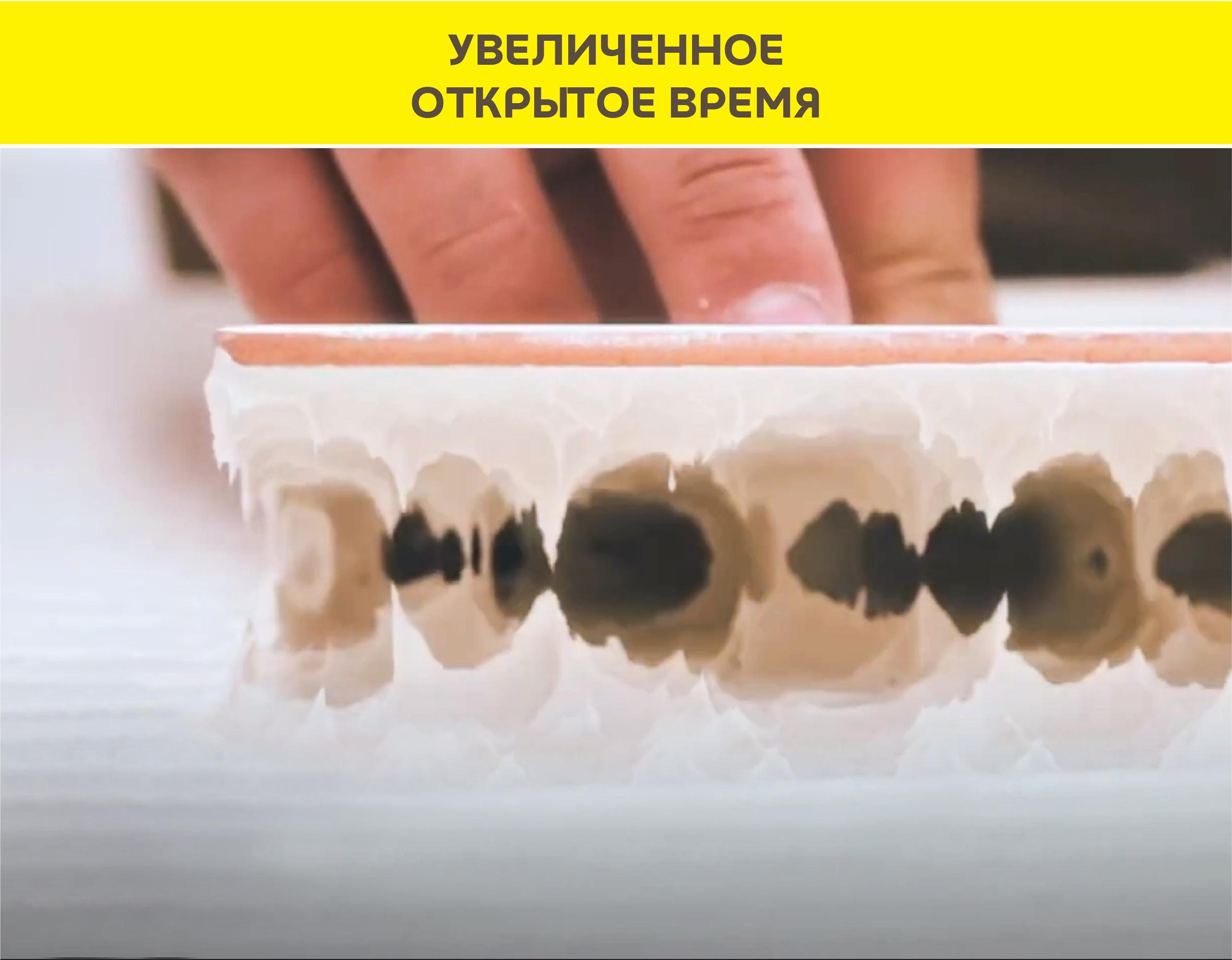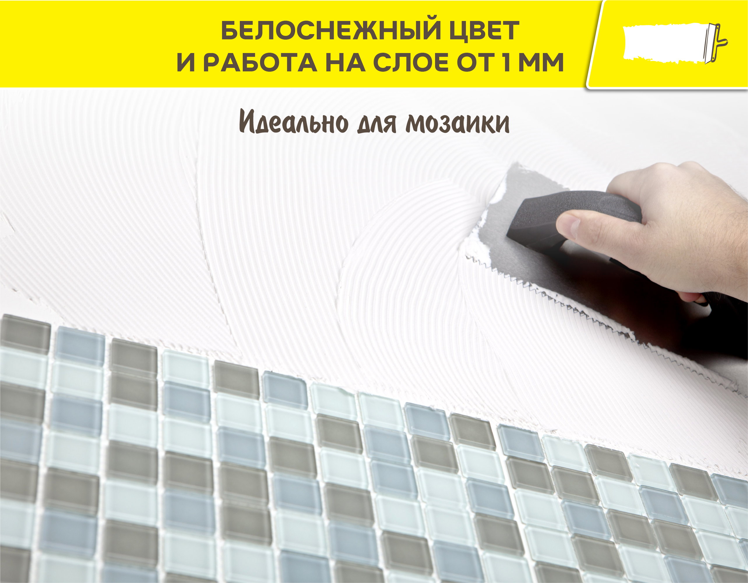 Предназначен для облицовки мозаикой, натуральным и искусственным камнем, керамогранитом, клинкерной и керамической плиткой, а также для других материалов, где требуется повышенная адгезия