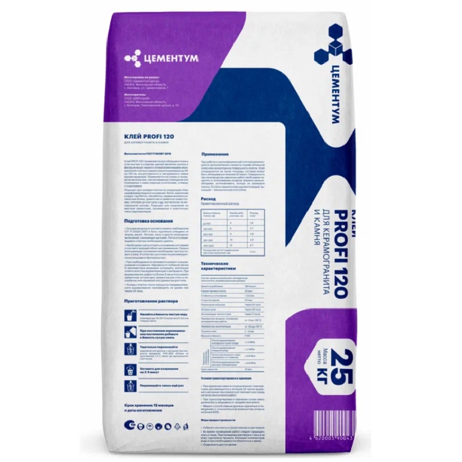 Клей плиточный Цементум PROFI 120 С1Т T