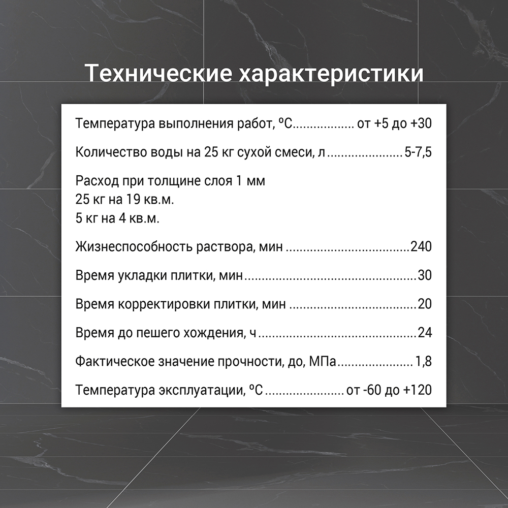 Профессиональный клей предназначен для укладки облицовочных плит любого формата из керамогранита, керамики, натурального и искусственного камня, клинкерной плитки
