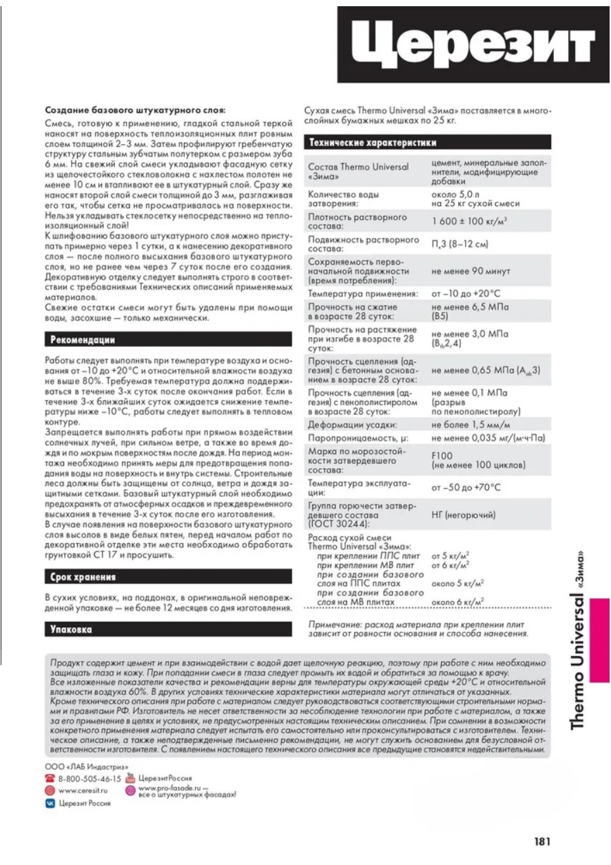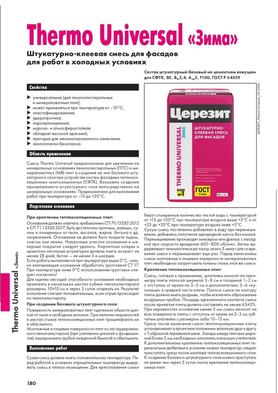 Штукатурно-клеевая смесь для теплоизоляции Церезит Термо Юниверсал зимняя 25 кг