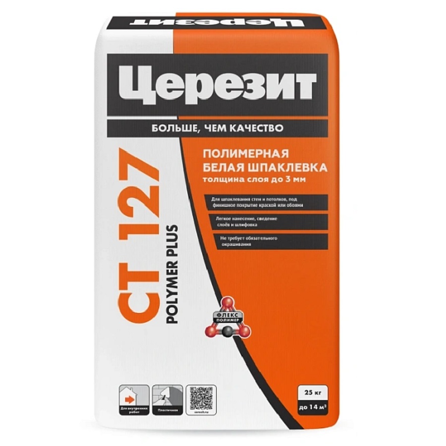 Белая полимерная шпаклевка Церезит CT 127 POLYMER PLUS финишная для внутренних работ