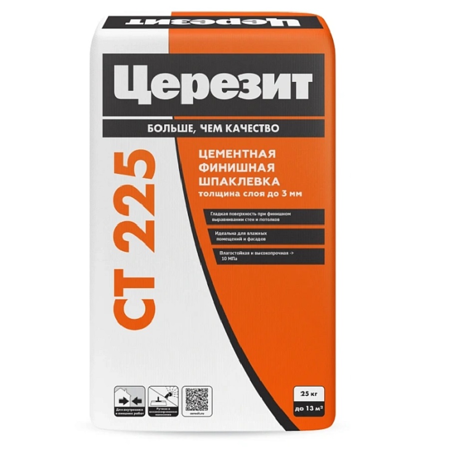 Белая финишная цементная шпаклевка Церезит CT 225 для наружных и внутренних работ