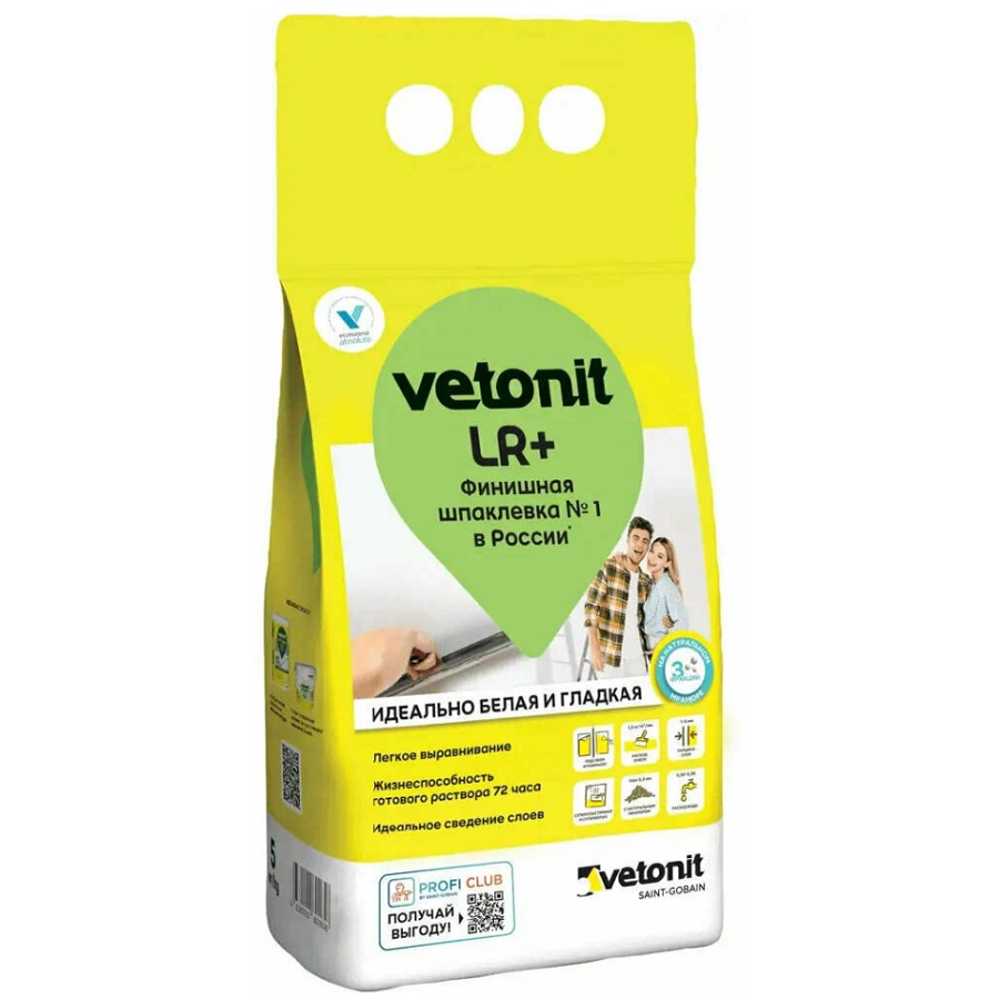 Шпаклевка vetonit LR+ не является водостойкой и не пригодна для выравнивания полов или оснований под облицовку плиткой