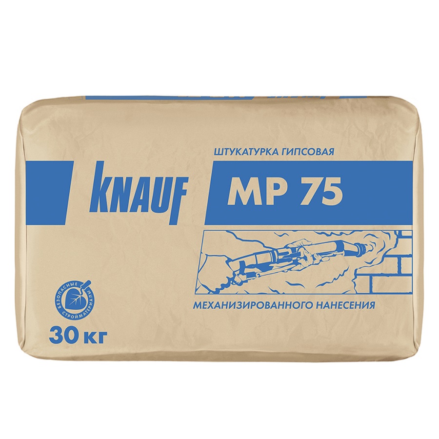 - Расход гипсовой штукатурки КНАУФ-МП 75 в 2 раза меньше традиционных цементно-песчаных штукатурных смесей.