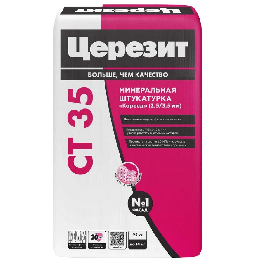 Минеральная декоративная штукатурка Церезит CT 35 «короед» зерно 2,5 мм «белая» и 2,5 / 3,5 мм «под окраску»