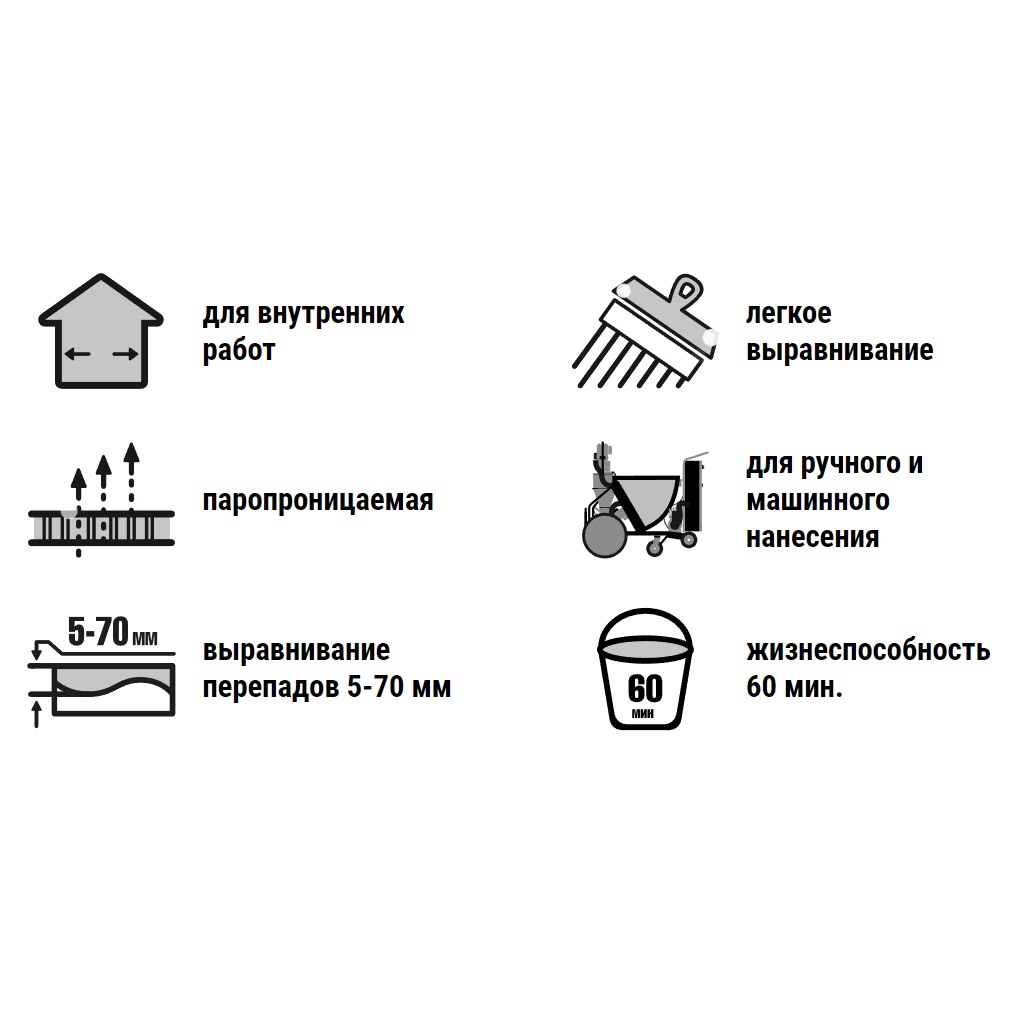 Область применения: внутренние работы, отапливаемые помещения