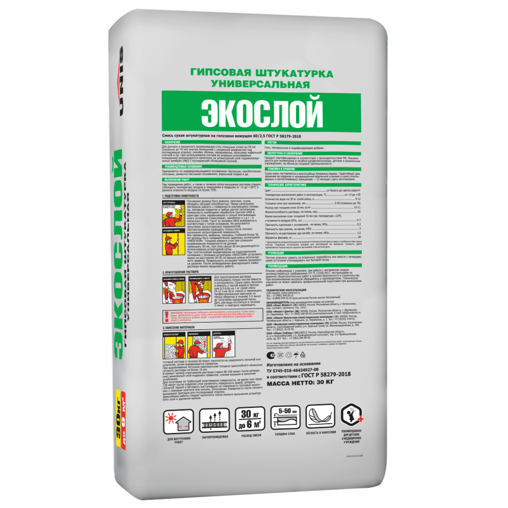 Штукатурка гипсовая ЮНИС Экослой