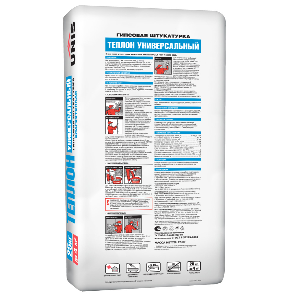 Штукатурка гипсовая ЮНИС Теплон универсальный