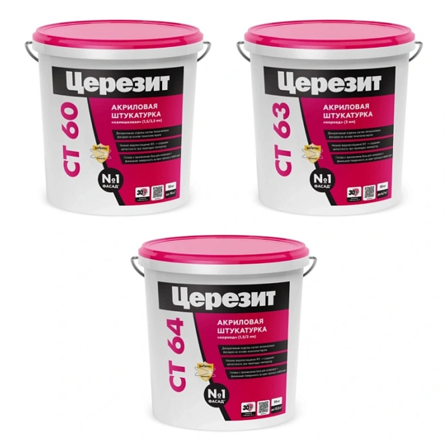 Упаковка: Декоративная штукатурка CT 60 поставляются в пластиковых ведрах по 25 кг.
