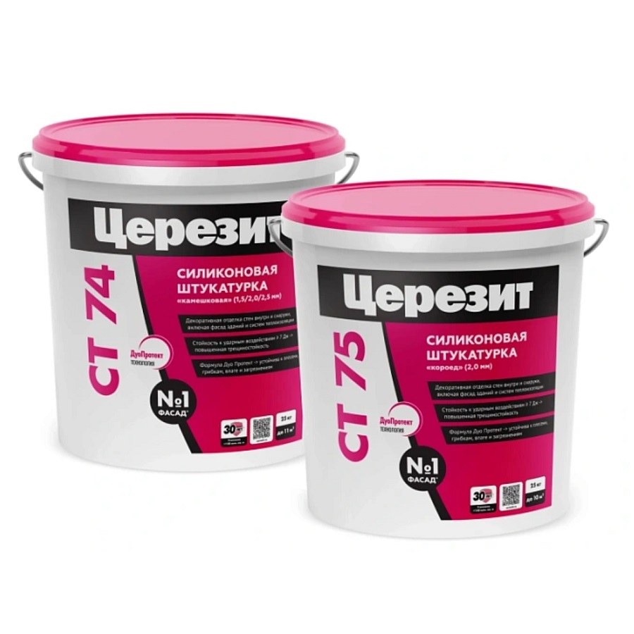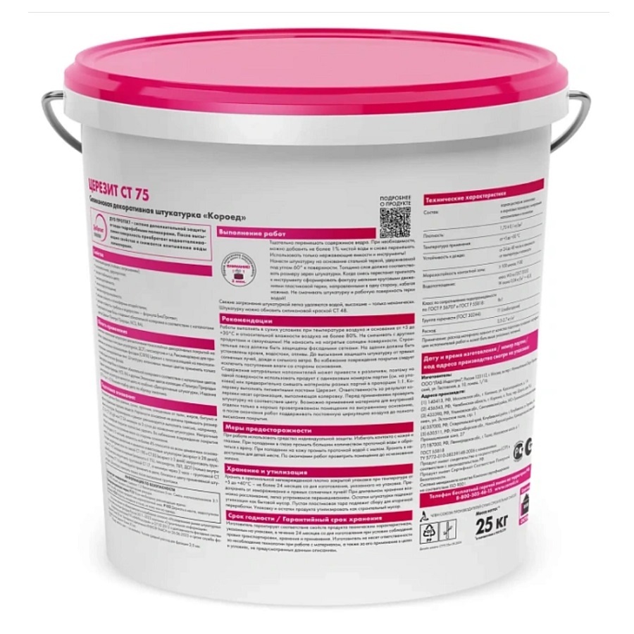 Упаковка: Декоративная штукатурка CT 75 поставляется в пластиковых