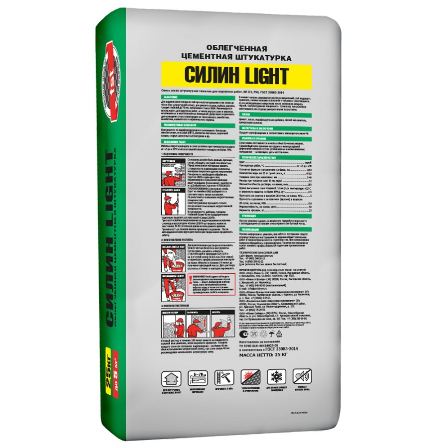 СИЛИН LIGHT -Теплосберегающая легкая армированная цементная штукатурка.