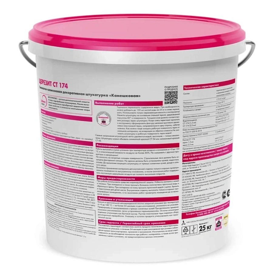Упаковка: Декоративные штукатурки CT 174 и CT 175 поставляются в пластиковых ведрах по 25 кг.