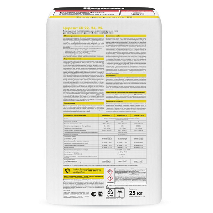 Упаковка: Сухая смесь CD 22 поставляется в многослойных бумажных мешках по 25 кг