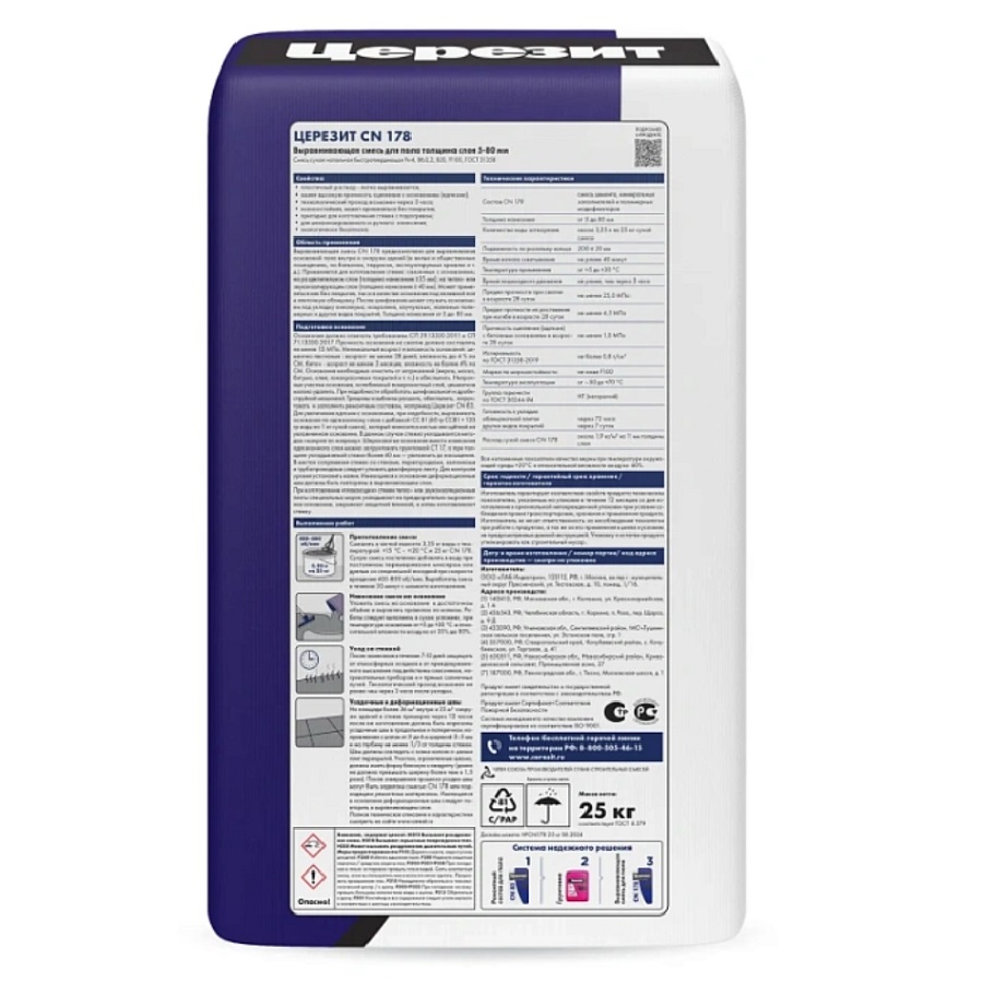 Упаковка: Сухая смесь CN 178 поставляется в многослойных бумажных мешках по 25 кг.