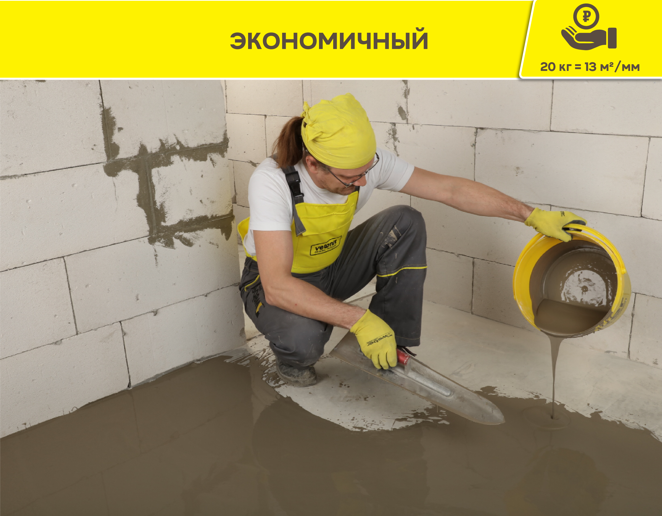 При выборе этого продукта, прежде всего делал ставку на качество и рекоменацию реальных мастеров. Брал, как финиш под линолеум. Качество на высоте. Не отслаивается кусками, как недорогие аналоги, хотя тех.характеристики вроде похожи. Год эксплуатации пола в прихожей и зале-без нареканий. Вообще, беру продукцию Ветонит не первый раз(гидроизоляцию, штуктурку) не подвела ни разу, качество-бомба, наверное, единственная марка, которая соответсвует тех. описанию, с которой я сталкивался при проведении ремонтных работ. Рекомендую.