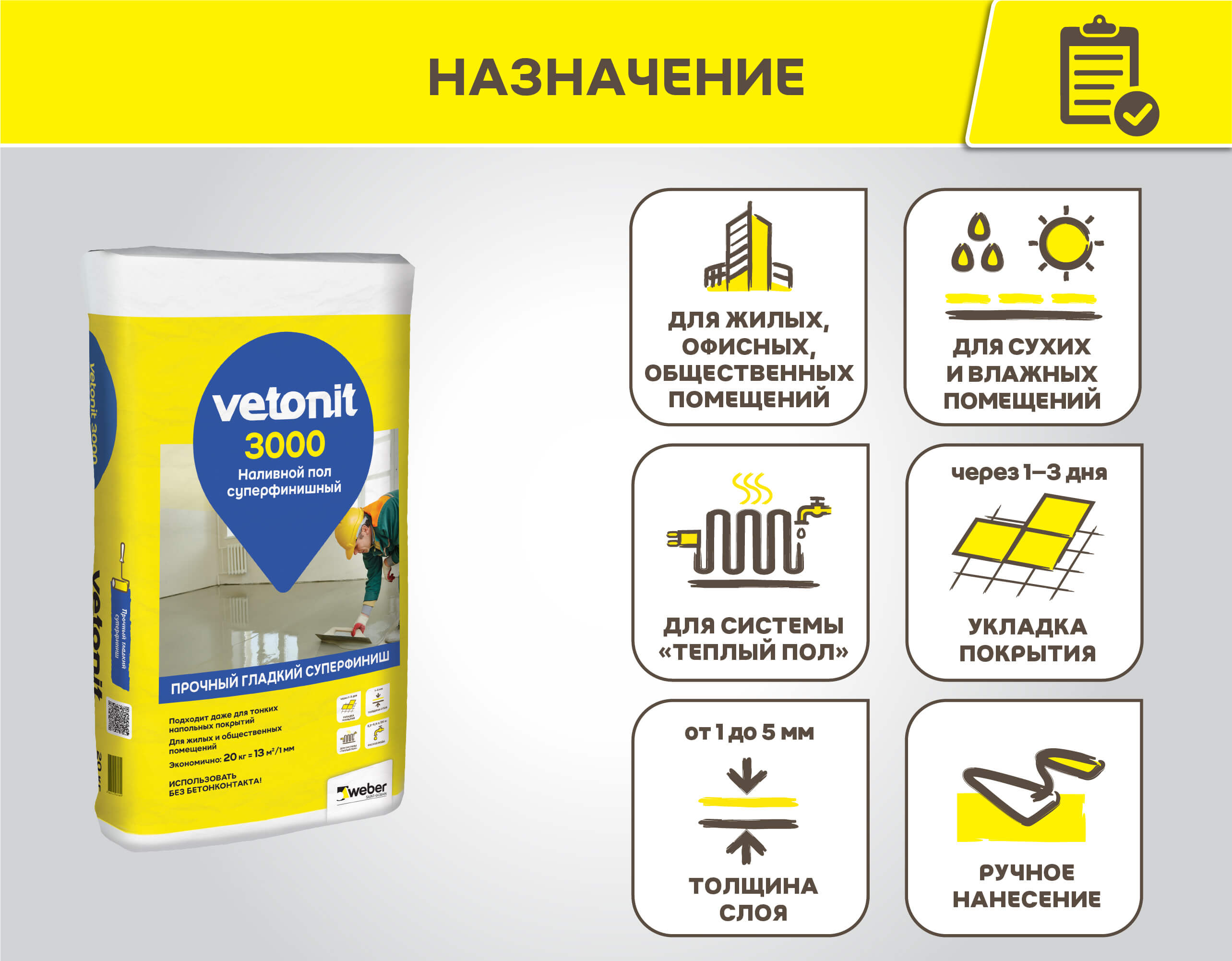 Подходит поддальнейшую укладку любых напольных покрытий в жилых и общественных помещениях