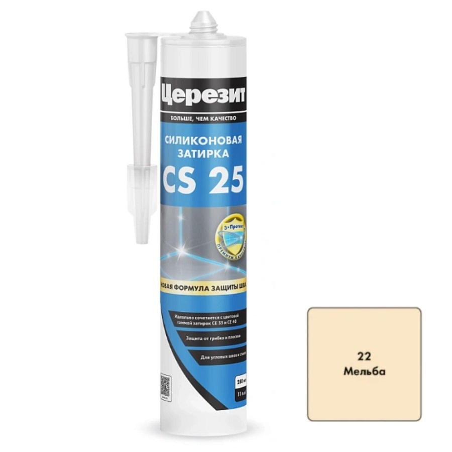 - Впускается в 22 цветах, включая прозрачный, в соответствии с цветовой гаммой затирок Церезит CE33 и CE 40