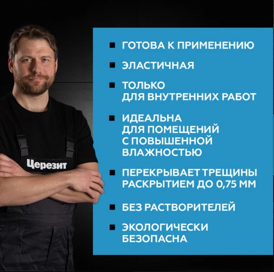 Предназначена для устройства эластичных водонепроницаемых покрытий перед устройством плиточных облицовок в помещениях, подверженных периодическому увлажнению (ванных, душевых, туалетах, кухнях и т.д.)